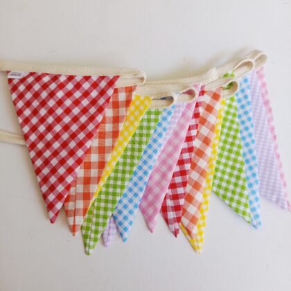 Flags are fully enclosed with no raw edges or overlocking. Each flag has a vertical seam down the back.
